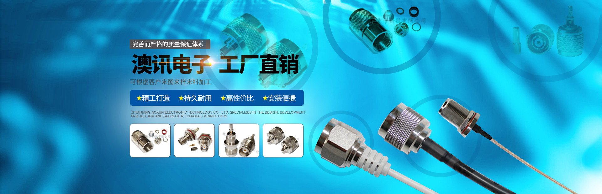 鎮(zhèn)江市澳訊電子科技有限公司,占地面積5000平方米,現(xiàn)有員工近百名,各類技術(shù)人員占15%。我公司專業(yè)從事射頻同軸連接器的設(shè)計(jì)、研制、開(kāi)發(fā)、生產(chǎn)、銷售。